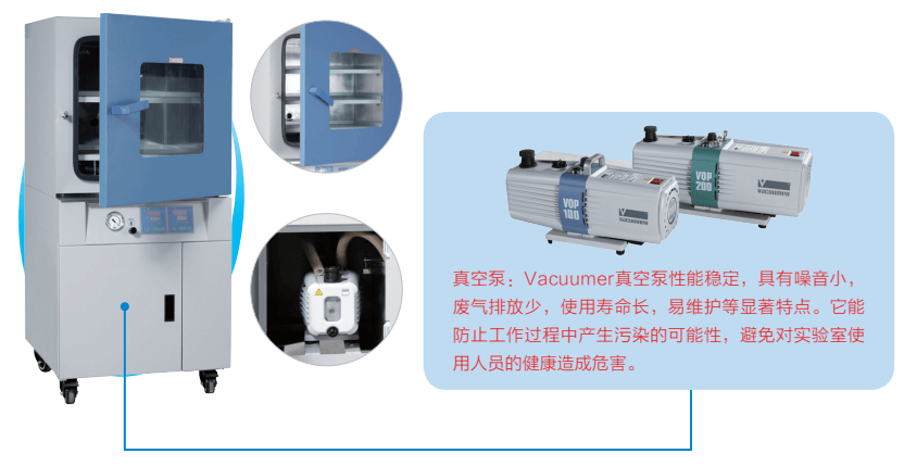 用途概述 真空干燥箱專為干燥熱敏性、易分解和易氧化物質而設計,能夠向內部充入惰性氣 體,特別是一些成分復雜的物品也能進行快速干燥。